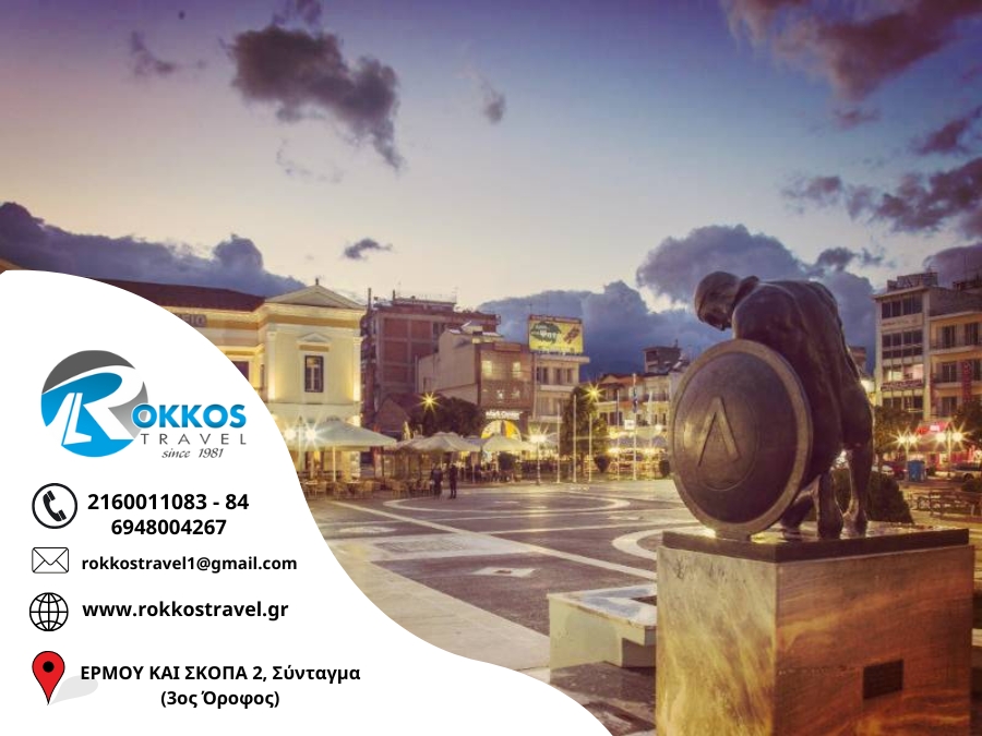 Κατόπιν αφήνουμε πίσω μας τη βυζαντινή πόλη του Μυστρά, και κατευθυνόμαστε στην πόλη της Σπάρτης. Περιτριγυρισμένη από τα βουνά Ταΰγετος και Πάρνωνα, η Σπάρτη ήταν το βασίλειο του Μενέλαου και της όμορφης βασίλισσας του, η πιο όμορφη από όλες τις θνητές γυναίκες της εποχής της, η Ελένη. Εδώ θα εχουμε ελεύθερο χρόνο για βόλτα, φαγητό και γνωριμία με την πόλη! Φυσικά θα επισκεφτούμε το σύγχρονο χάλκινο άγαλμα του Λεωνίδα, Βασιλιά της Σπάρτης, ο οποίος με τους 300 Σπαρτιάτες πολεμιστές του πολεμούσε τον ισχυρό περσικό στρατό στη Μάχη των Θερμοπυλών το 480 π.Χ.